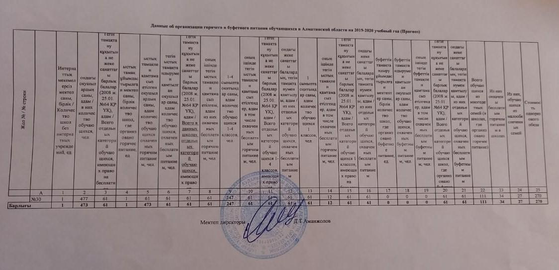 Ыстық тамақ туралы мәлімет » №30 орта мектебі