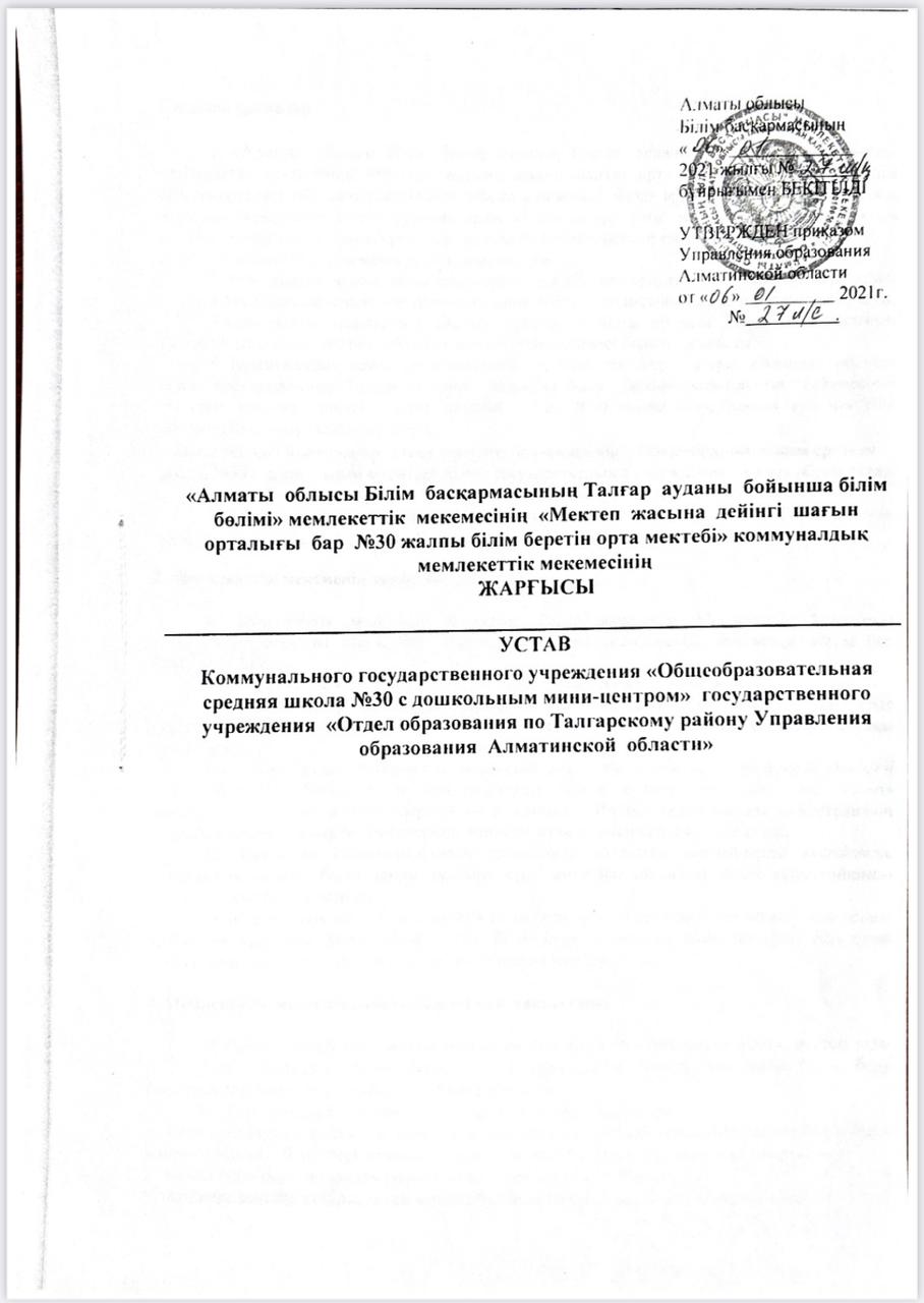 №30 Жалпы білім беретін орта мектебінің Жарғысы