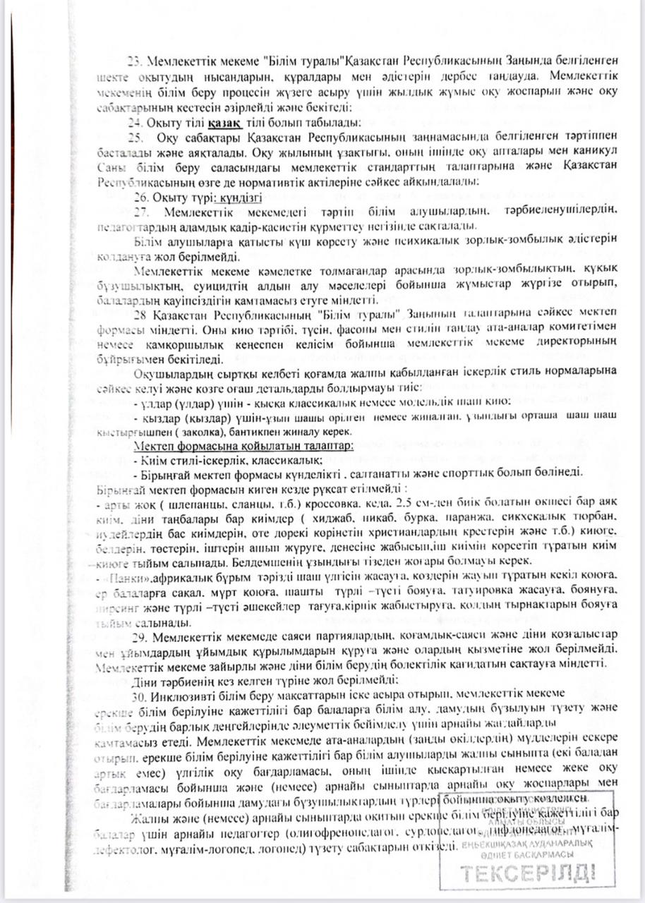 » » » №30 Жалпы білім беретін орта мектебінің Жарғысы