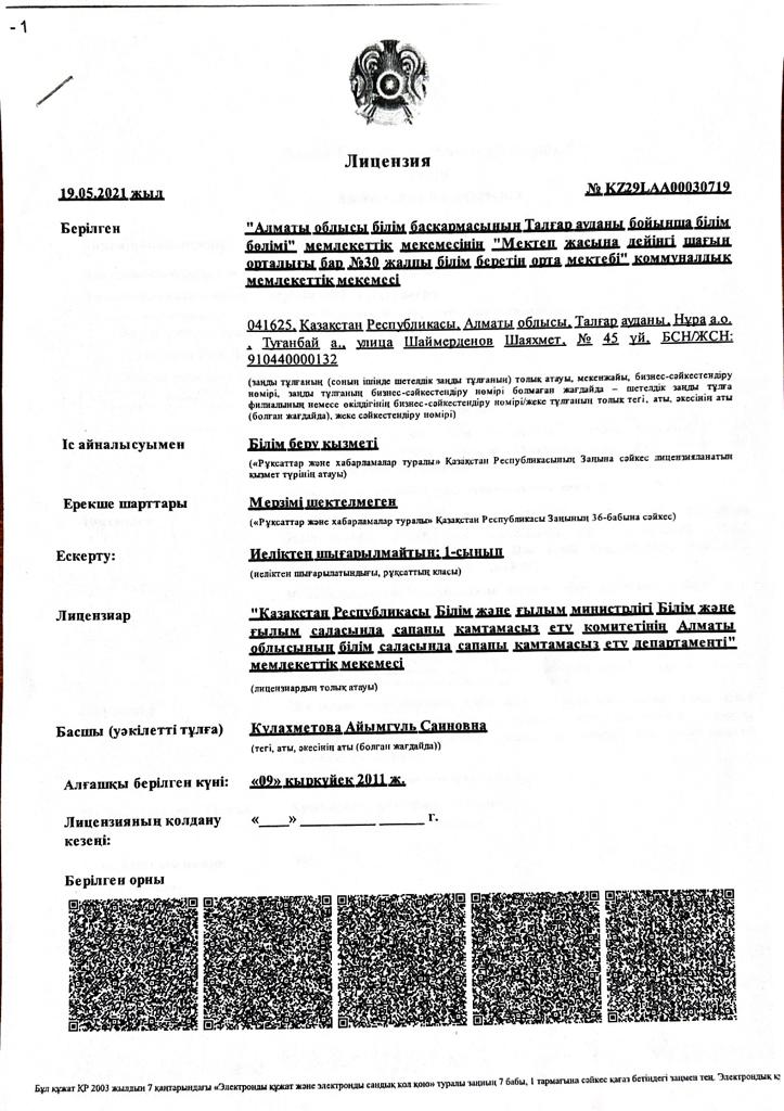 "Алматы облысы білім басқармасының Талғар ауданы бойынша білім бөлімі №30 жалпы білім беретін орта мектебі" КММі