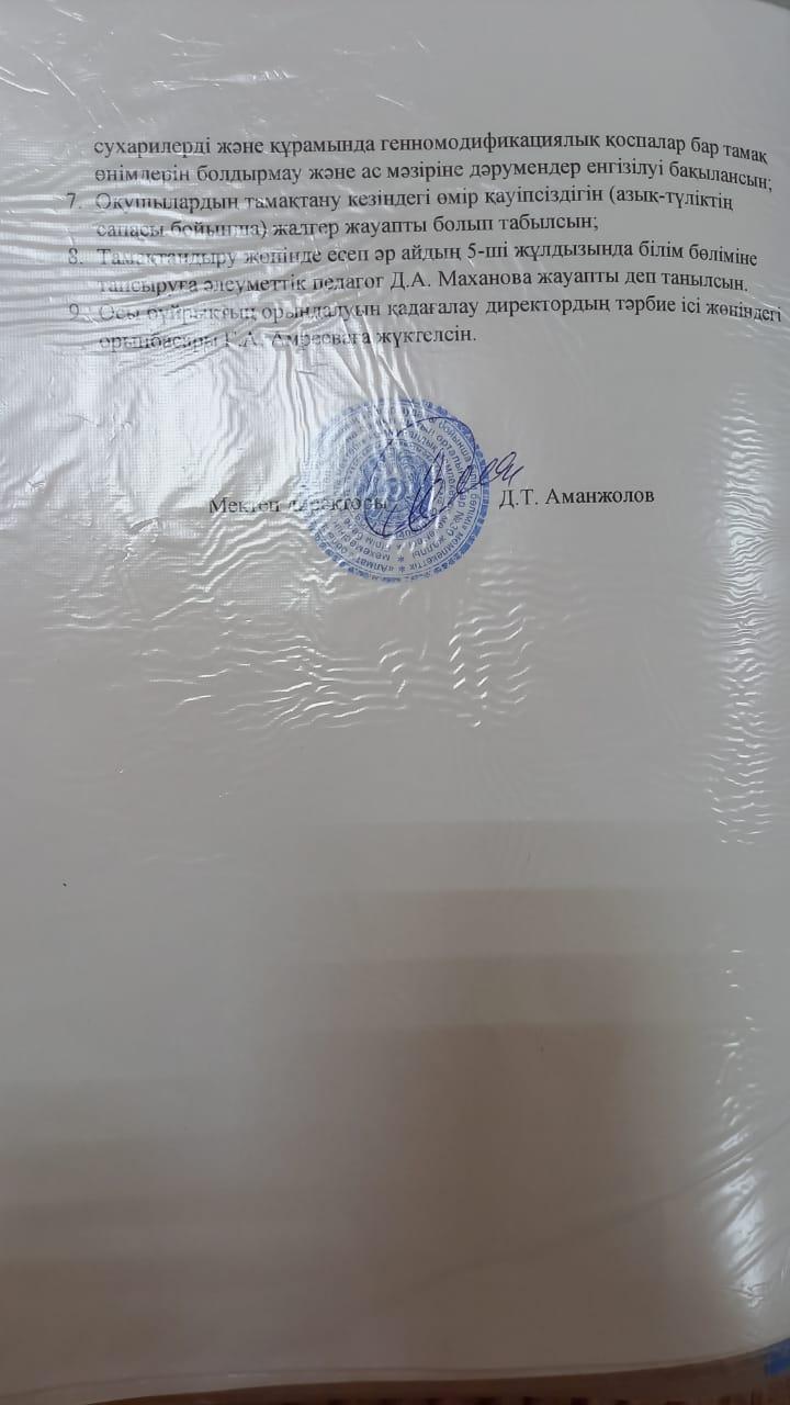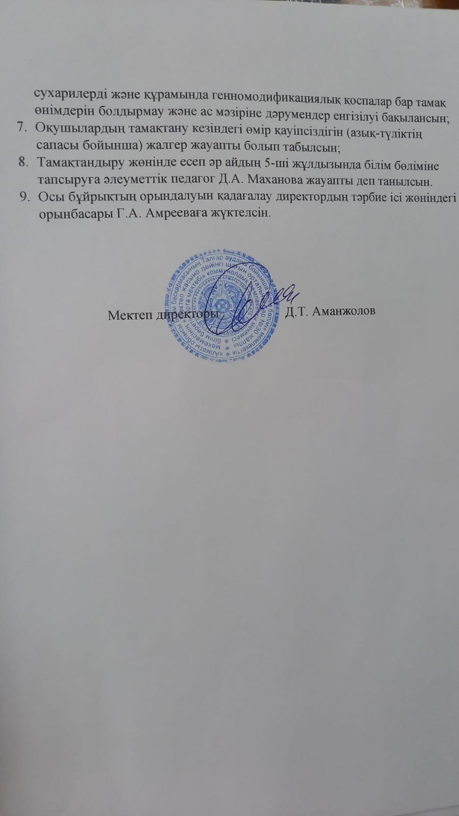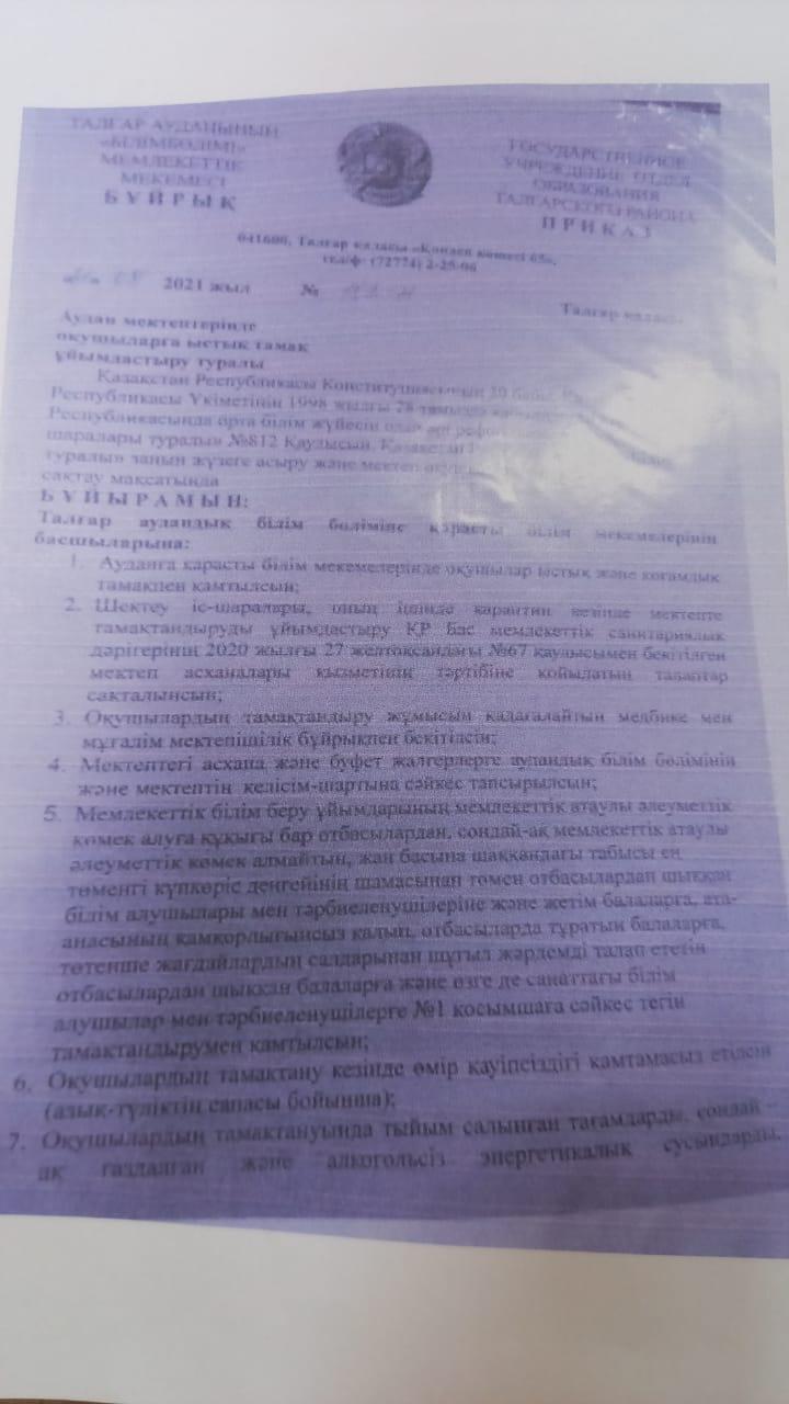 2021 жылдың ыстық тамақ бойынша бұйрықтар » №30 орта мектебі