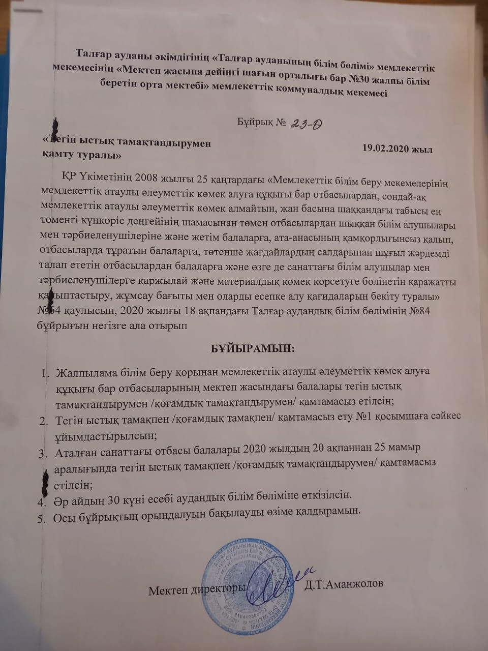 "Алматы облысы білім басқармасының Талғар ауданы бойынша білім бөлімі №30 жалпы білім беретін орта мектебі" КММ