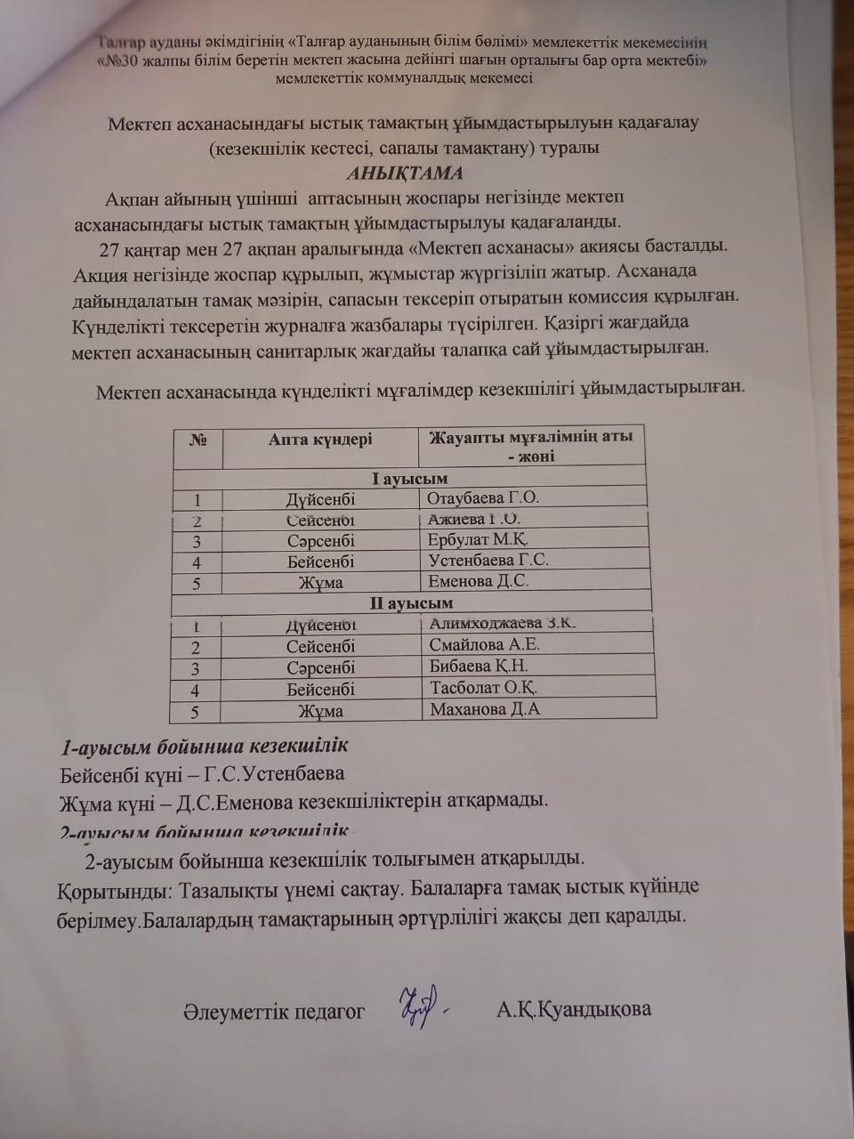 "Алматы облысы білім басқармасының Талғар ауданы бойынша білім бөлімі №30 жалпы білім беретін орта мектебі" КММ